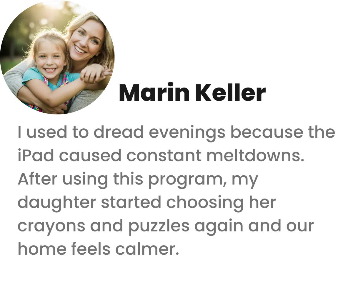 While other parents struggle with escalating screen battles, you'll be reconnecting with your child using our proven system.